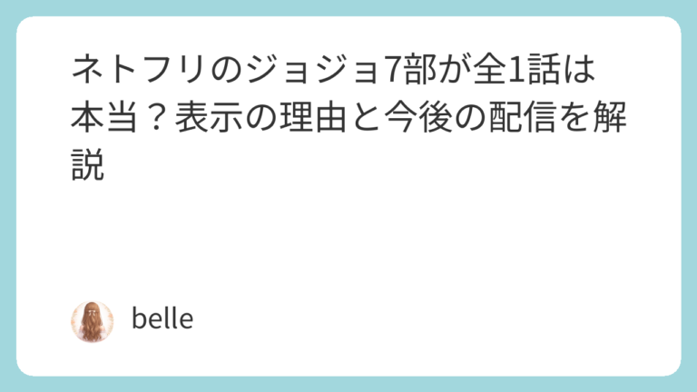 現在表示されている「全1話」という情報だけを見ると、不安や疑問を感じるのは自然なことです。しかし、その多くはNetflixの仕様や配信前の状態による一時的な表示であり、実際の作品内容や話数を確定的に示しているわけではありません。特にジョジョ7部のような人気シリーズであれば、通常のアニメ同様に複数話で構成される可能性が高いと考えられます。焦って結論を出すのではなく、今後の公式発表や配信更新をチェックしていくことが重要です。