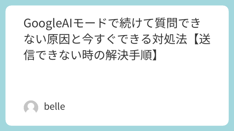 GoogleAIモードで「1回しか質問できない」「送信ボタンが反応しない」といった不具合が起きると、不安になりますよね。しかし多くの場合は、ブラウザや通信環境など一時的な原因によるものです。本記事では、原因の切り分け方から具体的な解決手順までをわかりやすく解説しています。